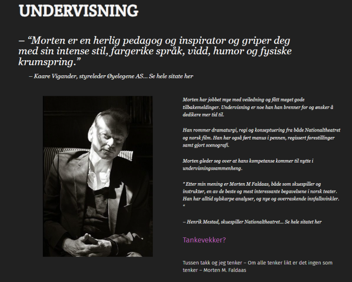 We crafted a sophisticated personal website for Morten M. Faldaas, a distinguished Hollywood actor and National Theatre veteran, showcasing his diverse professional scope. The design employs a classic, clean aesthetic to focus attention on his career breadth.